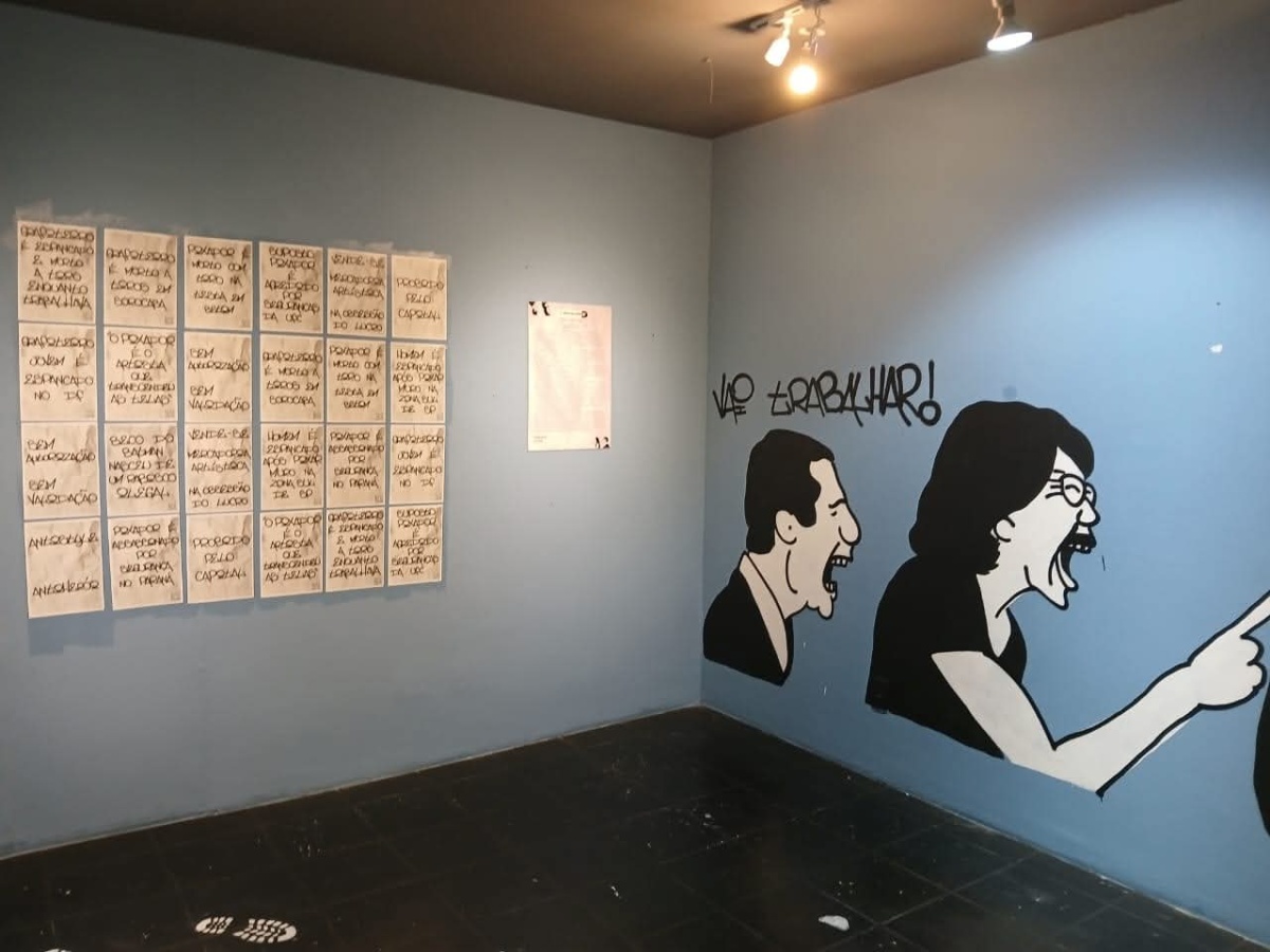 Vitor Maia, em “Tinta (Des)Proibida”, leva o graffiti, a pichação e os lambes para dentro da galeria, questionando os limites entre arte e vandalismo e ressaltando a potência política e social da arte urbana.